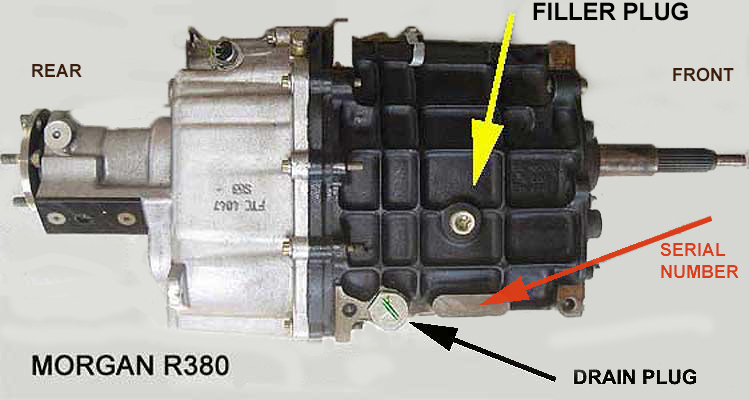 and the R380. Originally, the first versions and their manuals for the R380 called for an ATF-F as well. However, over time the box was improved the recommendation changed to one of the more modern brews, a MTF 94. Many of the fluids recommended for the Morgan gearboxes or axles are not to be found in North America. The recommendation for R380s from experts in the United Kingdom was for Castrol SMX-S...(discontinued now and replaced by Castrol Syntrans at the right). Now the Syntrans It can safely be replaced by either of the two alternatives shown here. Three new alternatives (2024) are HERE The R380 capacity is 2.667 Litres absolutely dry and more like 2-2.1 L when I am refilling. I change my R380 fluid every 20-25,000 kilometers |