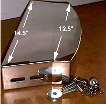 The Factory model is sold for £154.37 (inc.-VAT). and comes in black painted mild steel, an iffy copy. (you would be wiser to make one yourself) Over time, the paint chips and the metal rusts presenting an unattractive appearance. However, a few years ago, John Worrall at Heart of England Morgans was prevailed upon by fans to create a vastly upgraded version in mirror polished stainless steel. (See image at the left). It can be had from Heart of England, Simmonds or Brands Hatch Morgan. The price with stainless fittings or spacers when required is £150.00.