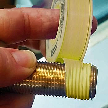 should use petroleum-resistant yellow tape. They come in small rolls. The only trick in using them, is that you should wrap them tightly in the correct direction so that the tape has no chance of unravelling when you thread what ever you wrapped with it. You do not want pieces of tape circulating in any system....VIDEO |